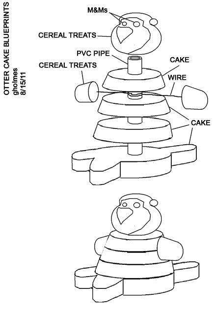 First off, anyone who knows my alliance partner knows she loves otters. What’s not to love? They’re adorable. So, for her birthday I decided I’d make her a sea otter birthday cake. I started with this plan…