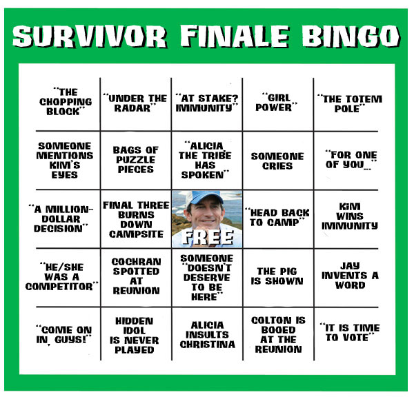 Your Survivor finale bingo game was awesome. Have you created one for the Philippines finale? Thanks.