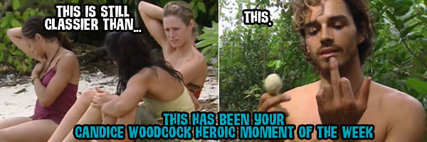 Candice also said that she and Sundra had a secret alliance going though, so this episode is a plus for her (and this is another reason to give Sundra player of the week).